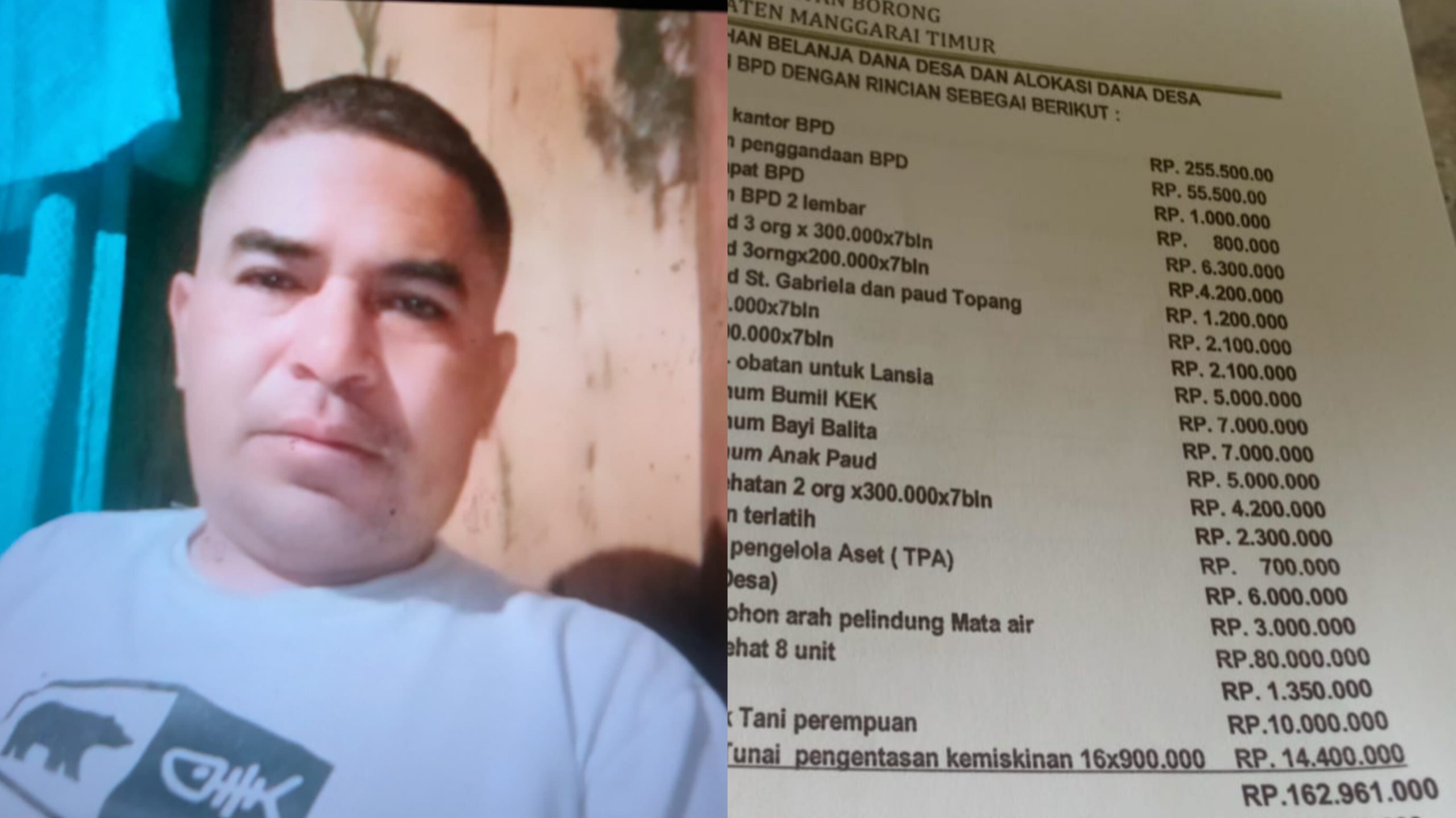 ”Kami menemukan dugaan penyimpangan anggaran tahun 2025 sebesar Rp162.961.000. Fisik barang tidak ada, namun uangnya sudah habis. Kepala Desa dan Bendahara juga telah mengakui hal ini saat kegiatan monitoring dan berjanji akan menggantinya,” ungkap Dionisius di kediamannya, Minggu (12/4/2026).