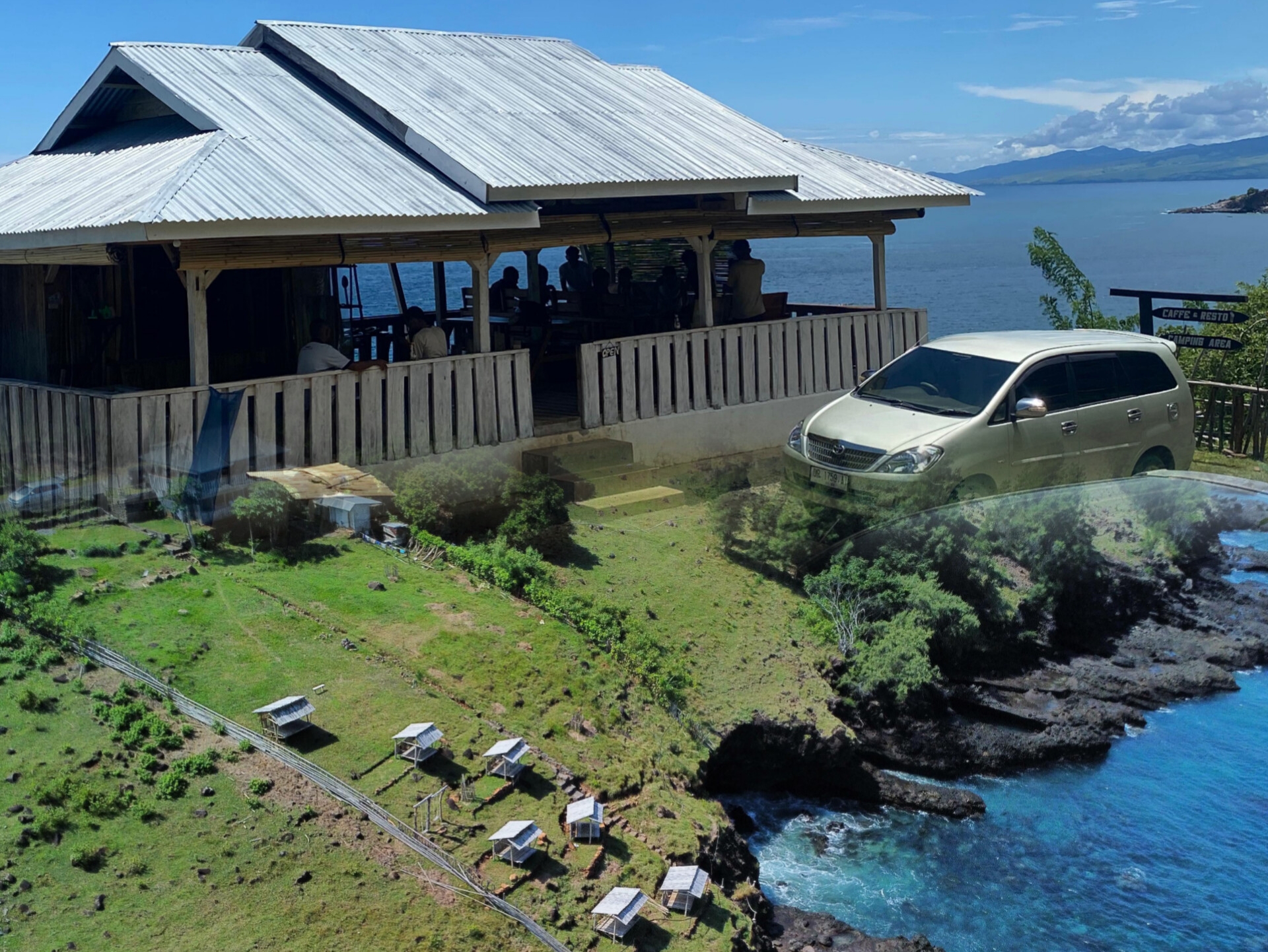 View laut dan keindahan sunset di kafe Weri Pateng menjadi obyek utama bagi wisatawan yang melakukan perjalanan wisata melawati pantai utara menuju Wae Rebo.